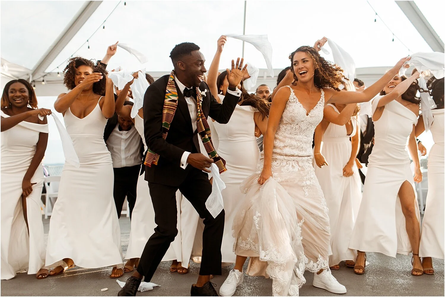 > The entire bridal party did a swag surf during the grand entrance